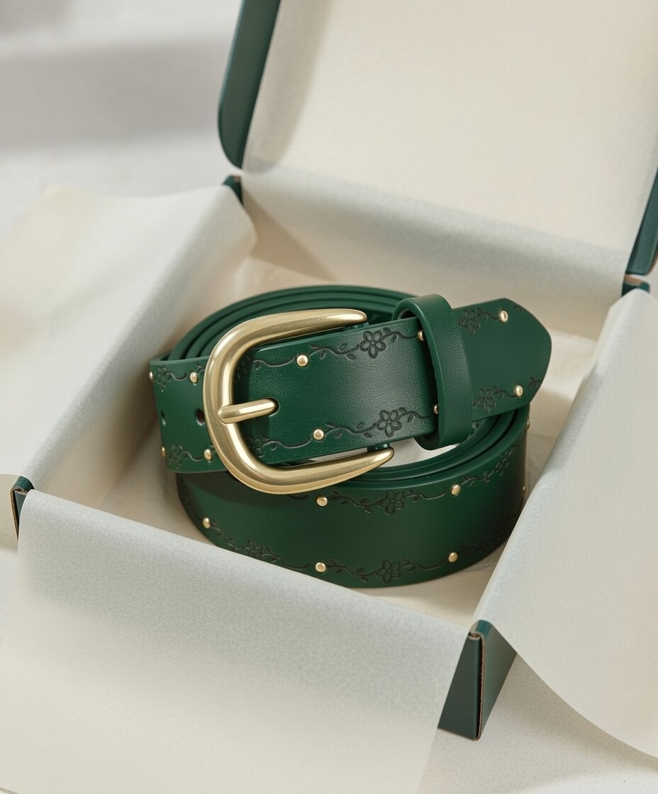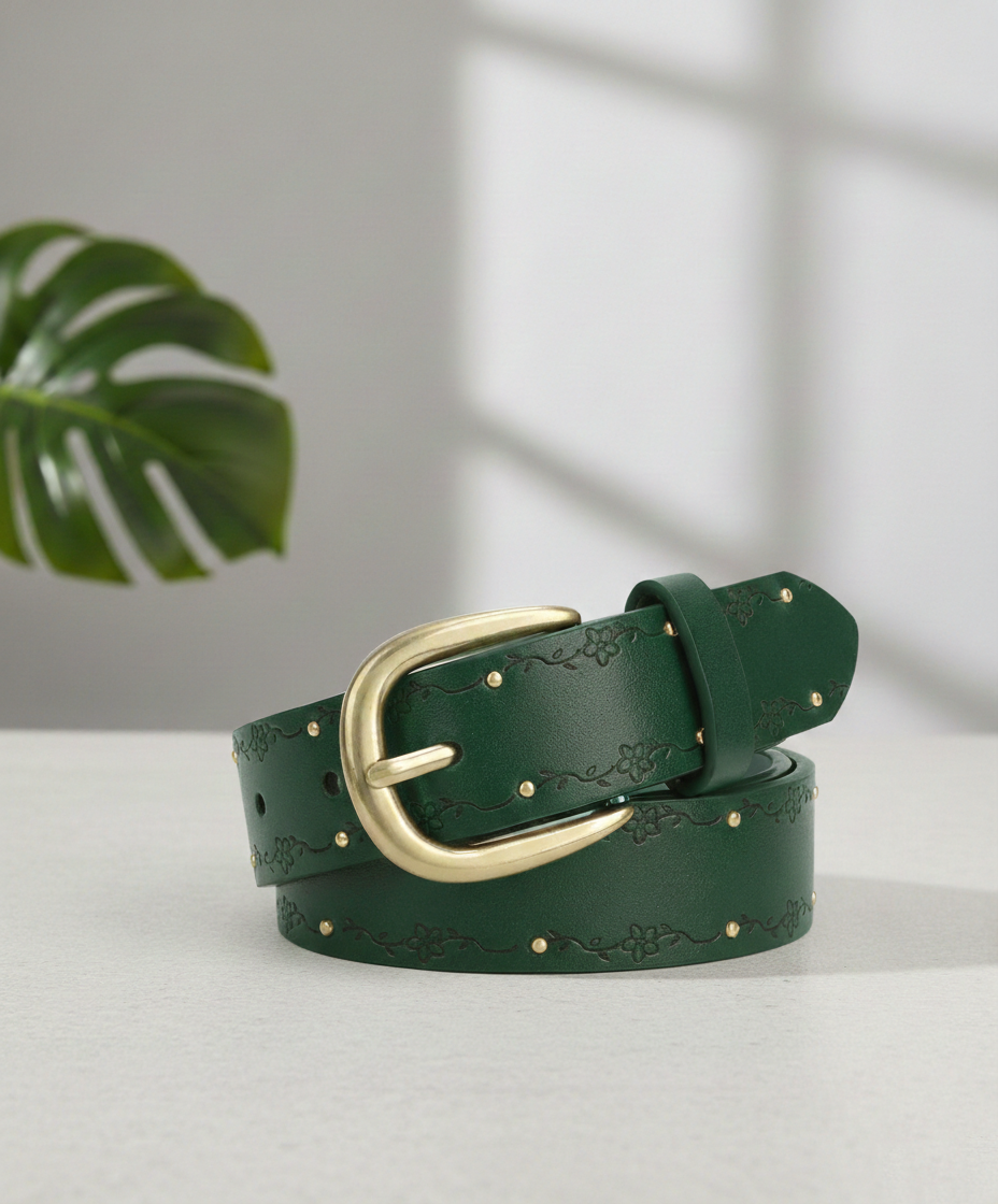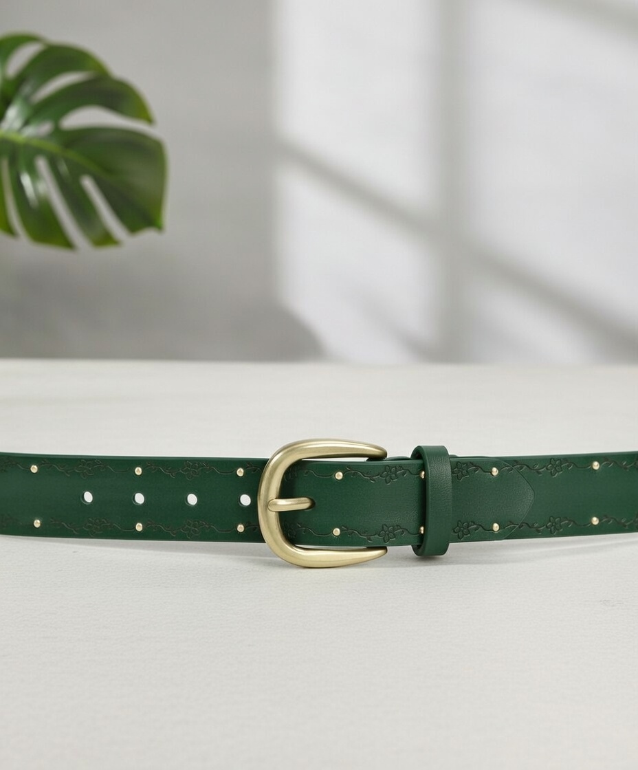 Elevate your everyday style with this beautifully crafted women’s leather belt, designed to blend classic charm with modern elegance. Made from high-quality faux or genuine leather (adjust based on your product), this belt features a rich brown finish that complements both casual and dressy outfits. The surface is delicately embossed with a subtle floral vine pattern and accented with small gold-tone studs, adding just the right touch of feminine detail without overwhelming your look.