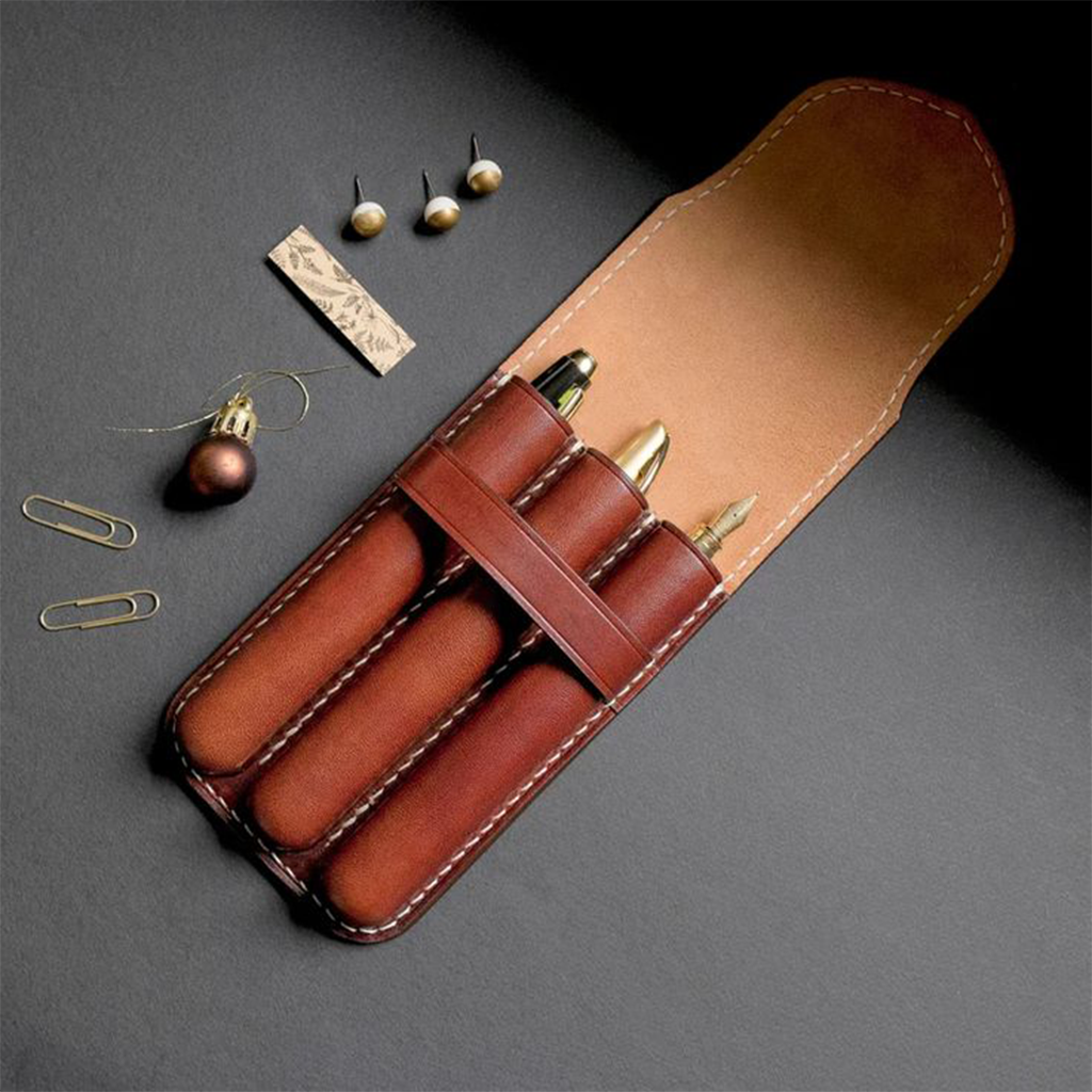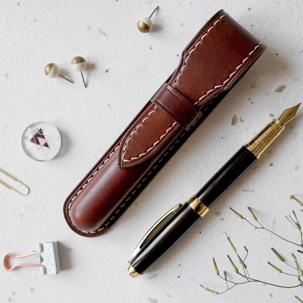 Stationary Vintage Leather Journal with Key Rustic Brown Pebbled Leather Journal Horse Leather journal Leather single pen pouch Galen Leather pen case Patrician Pen Vault